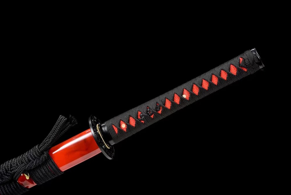 Inspired by the blazing red of traditional Japanese ceremonies, this ninjatō is a living work of art. Forged from manganese steel, this sword stands out for its robustness and its scarlet scabbard, which evokes courage and passion. An exceptional piece for those who value bold culture and aesthetics.