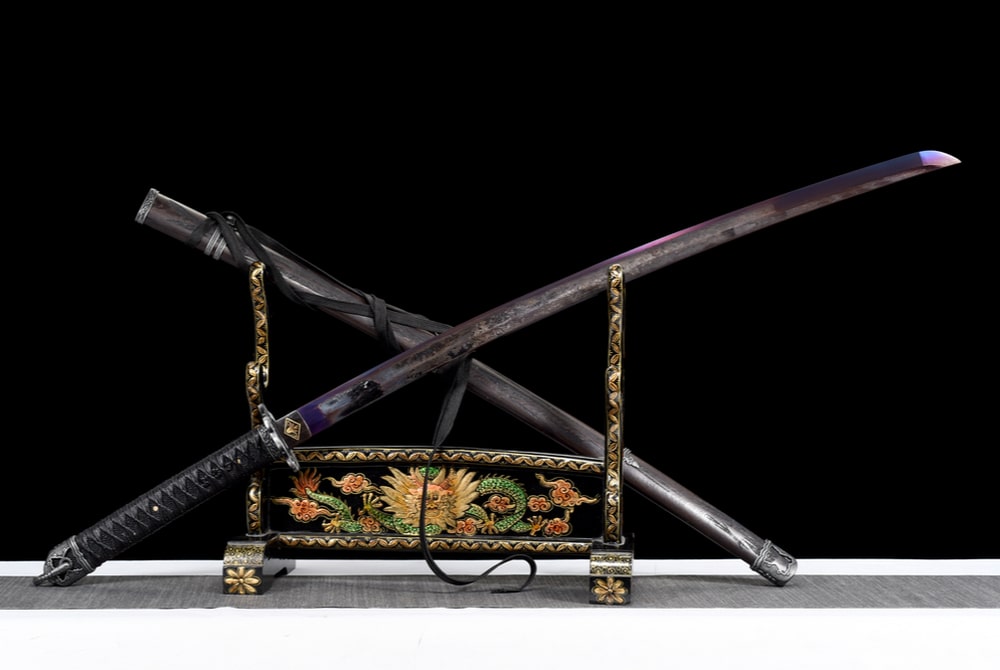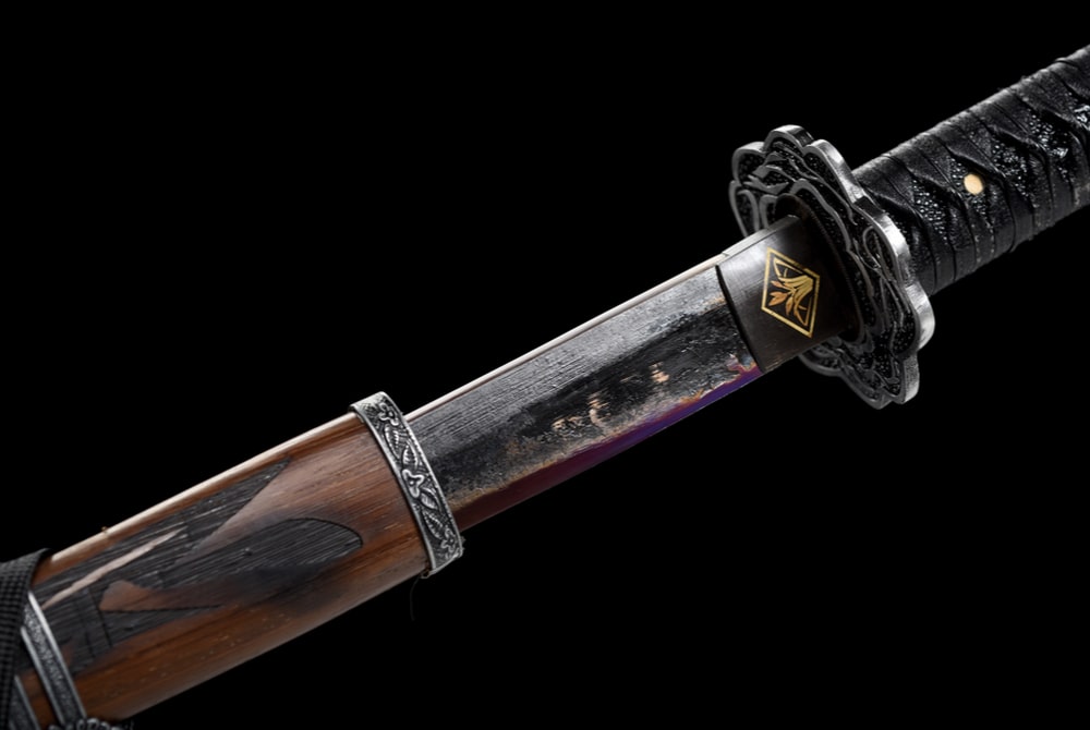 This katana has been artificially aged to give it the appearance of a Japanese sword from the Sengoku period. The rosewood used for the scabbard and handle has been treated with a special process to make it look antique. The blade has been hand-forged by a master swordsmith from steel with a high manganese content.